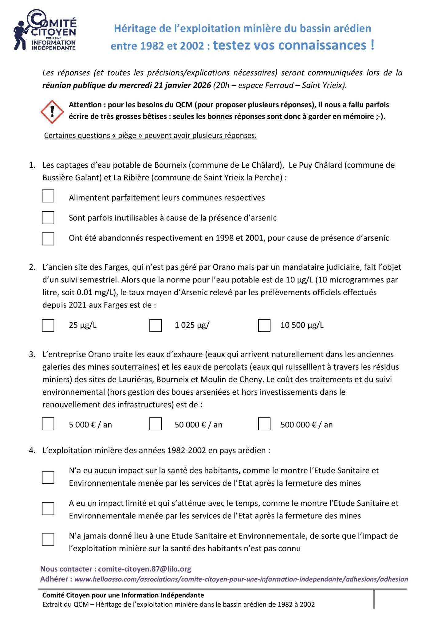 2026 commence avec une nouvelle réunion publique du Comité Citoyen sur la thématique de l’héritage environnemental de l’exploitation minière des années 1982 à 2002.